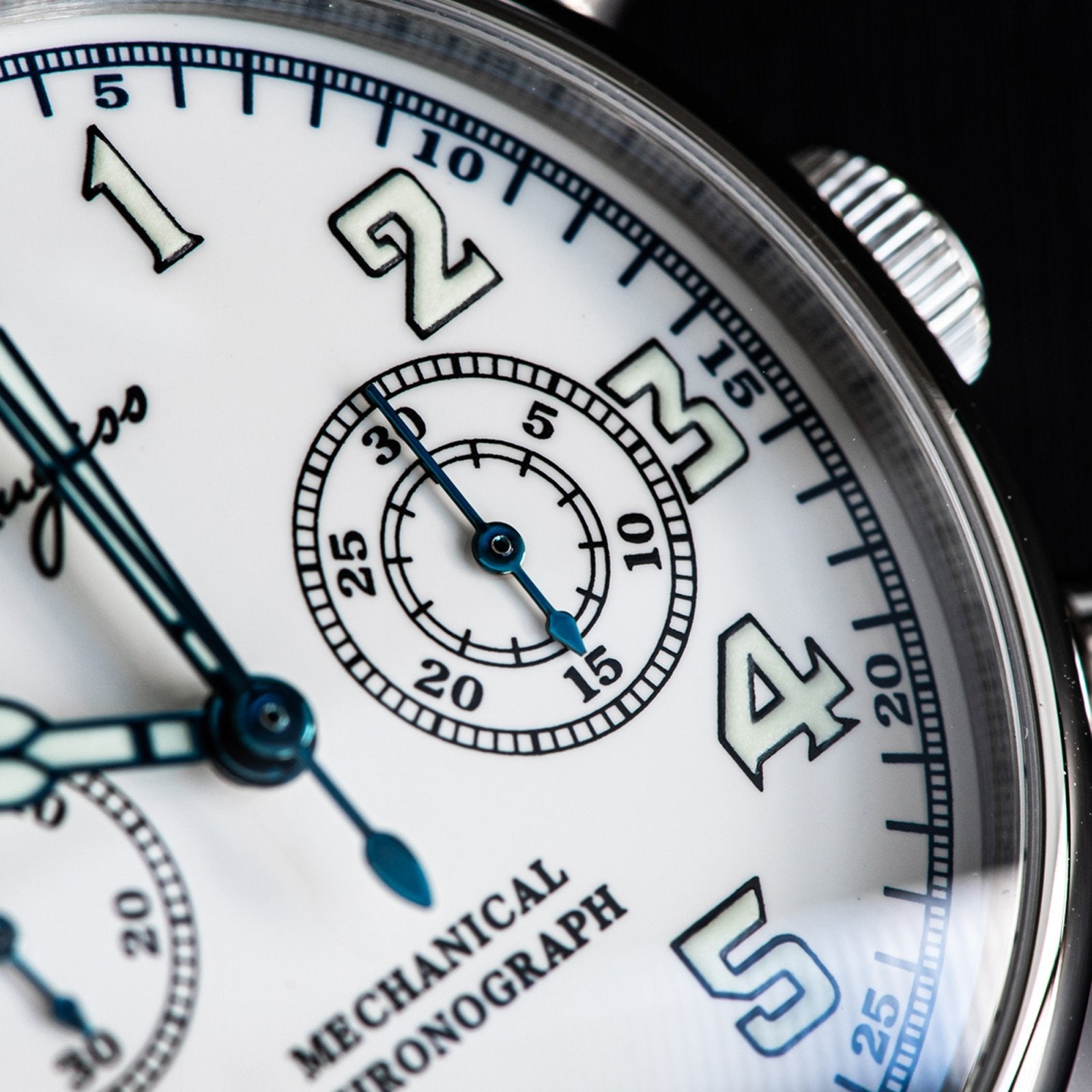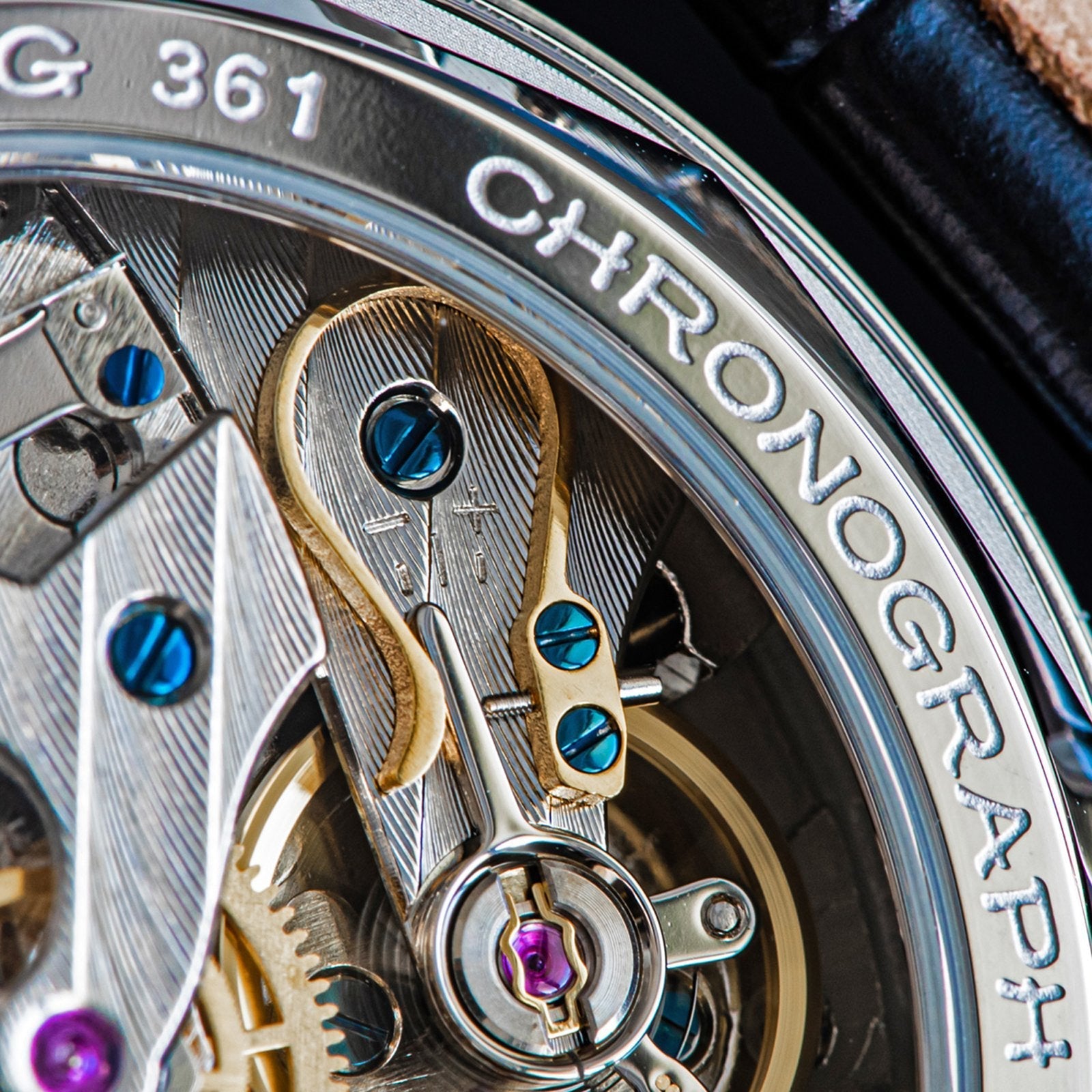Features: Column Wheel Chronograph, Luminous Hands, Blue steel screws and Exhibition Case Back Cover
